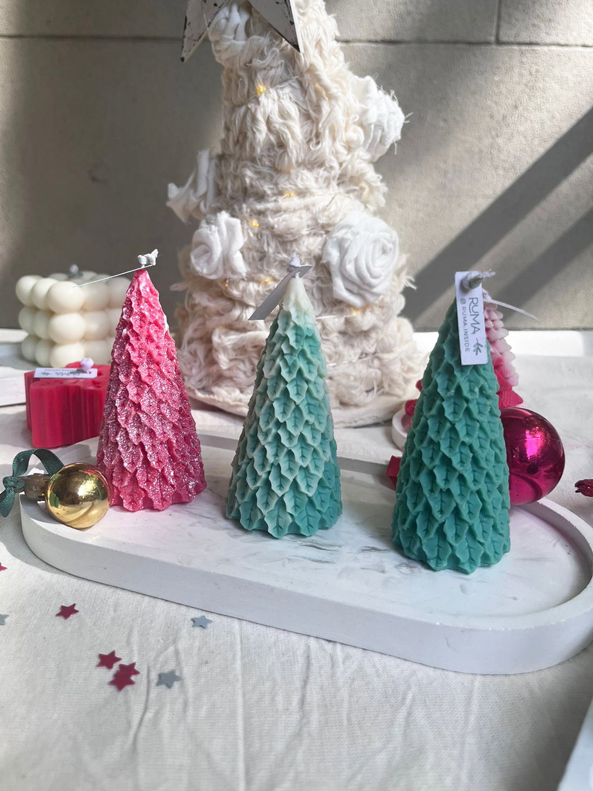 Vela de pino de navidad con hojas